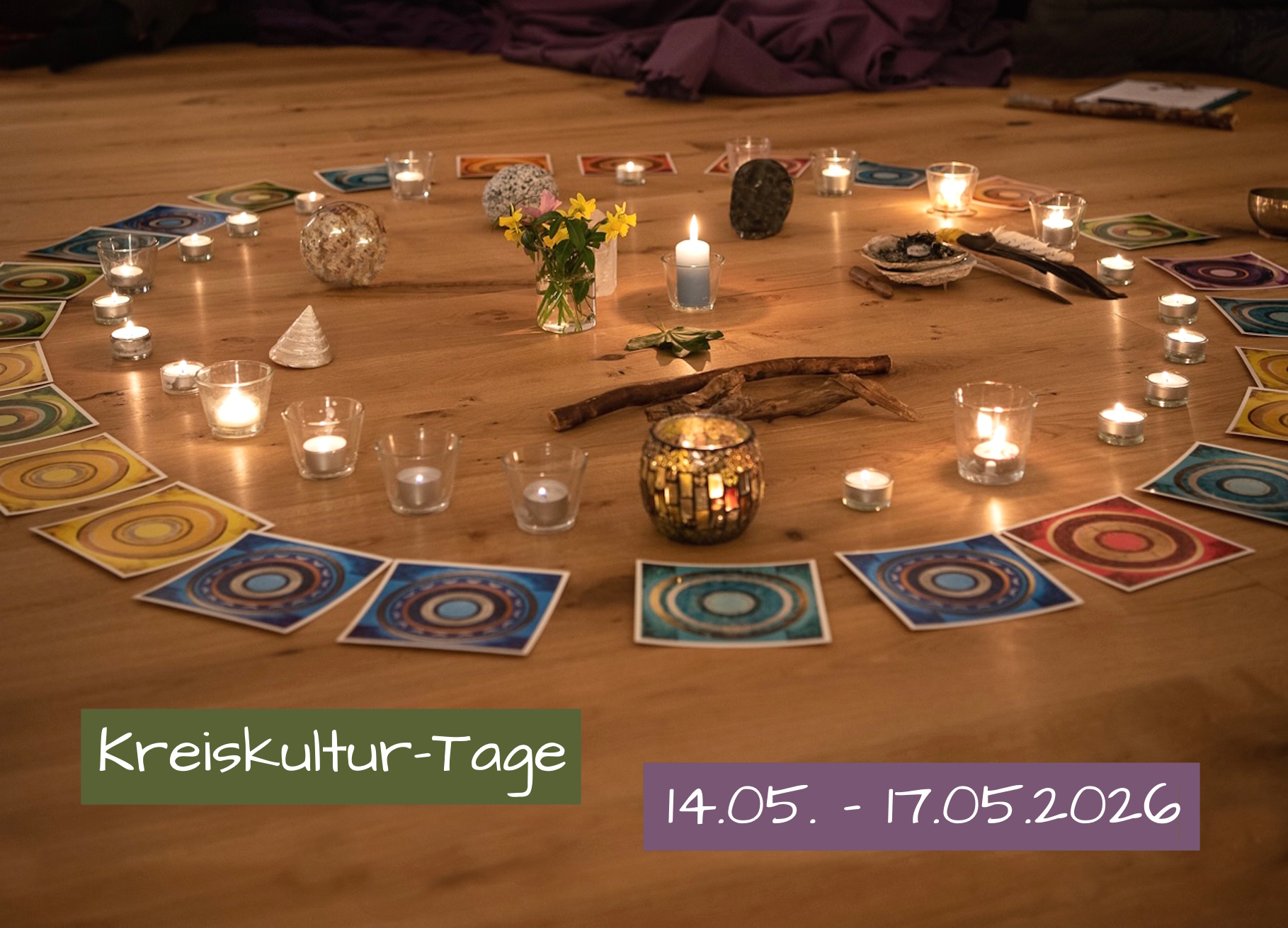 Während vier Tagen tauchen wir ein in die Welt des Kreises: Gemeinschaft, Gleichwertigkeit, Authentizität, Wahrheit, zyklisches Weltbild, Ganzheit, sich mitteilen und zuhören, füreinander da sein.